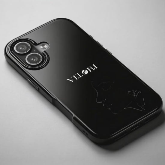 Glossy black and quietly bold — this phone case settles into your daily rhythm without shouting. The minimal "VELORI" script sits over a faint floral silhouette, a restrained detail that reads like a private signature. Hold it and you feel the reassuring weight of protection: a rigid outer shell and a flexible rubber liner work together to soften drops and shield edges, while the lay-flat bezel keeps the screen off hard surfaces. The glossy finish catches light, deepening the black and letting the subtle floral texture reveal itself at certain angles. Weathering and sunlight won’t dull it; UV protection helps maintain the rich tone and print clarity. For someone who values clean lines, dependable defense, and a touch of quiet elegance at everyday moments — from commuting through rain to slipping into a night out — this case keeps the phone safe and the style intentional.